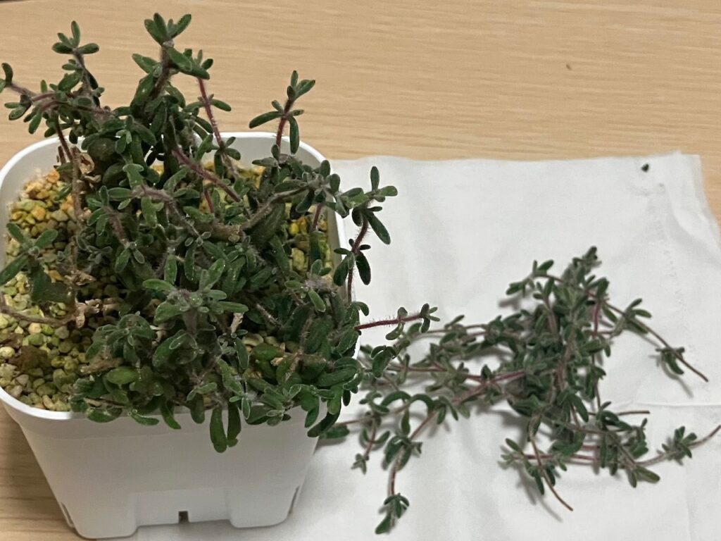 植物の作業もはかどり、今日は数日前にカットしたドロサンテマムの挿し木を作ってみました。