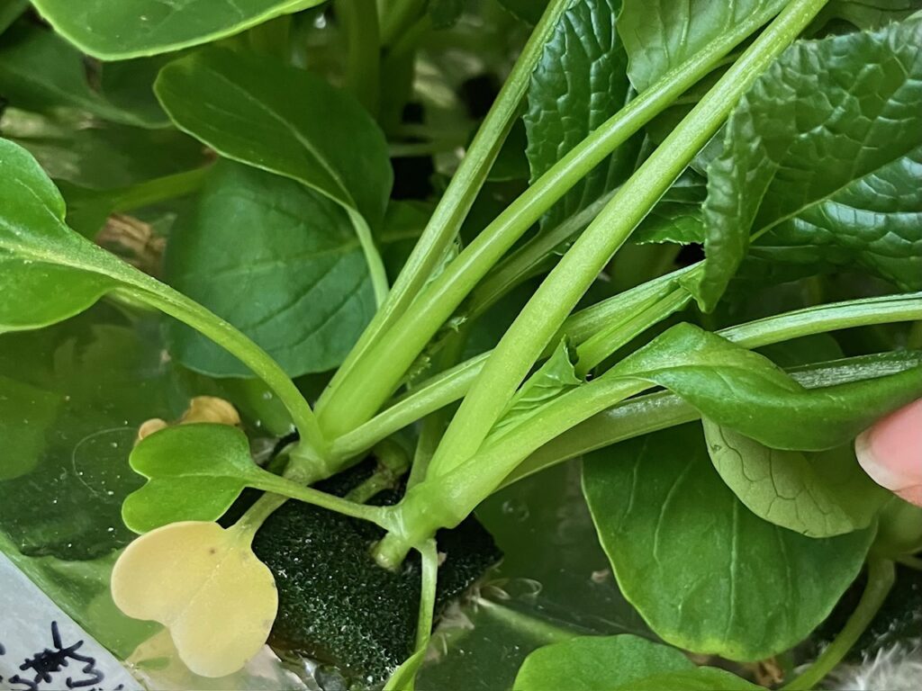 冬の室内で小松菜を育てていますが、、市販品のように茎が伸びてくれないことに悩んでいます。