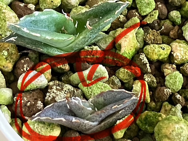以前に比べて瑞々しさがなくなり、赤黒く変化しています。これは寒さの影響かもしれません。また用土の赤玉土とバーミキュライトが劣化してきたため、水はけの良い用土に植え替えて様子を見る事にしました。