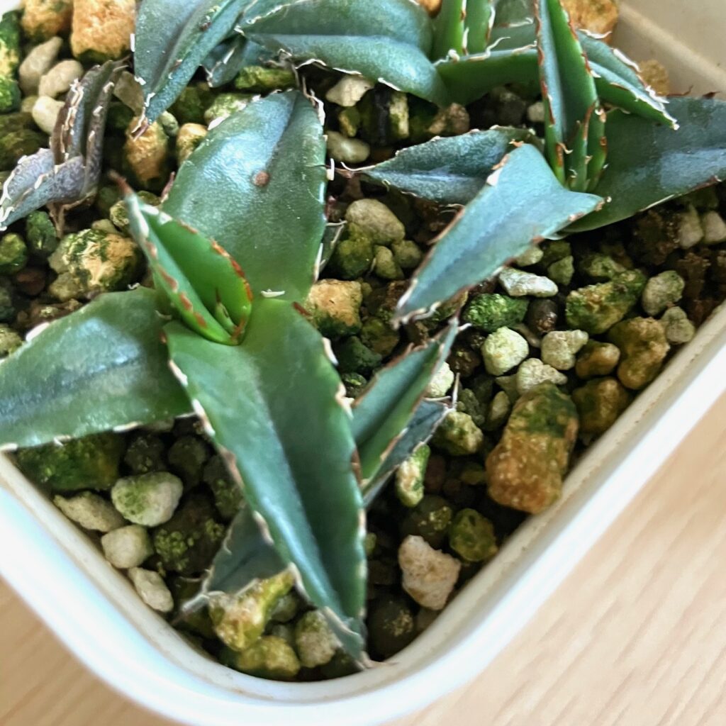 アガベらしい肌の模様と、刺のうねりが確認できるようになりました。