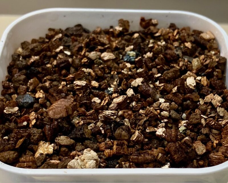 播種には、赤玉土小粒とバーミキュライトを混合した培地を使用しました。配合割合はおおよそ赤玉土2に対してバーミキュライト1です。