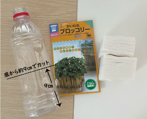 菌が付くと栽培途中で腐りやすくなるので、ペットボトルは良く洗い、出来ればアルコール除菌スプレーなどを使ってください。