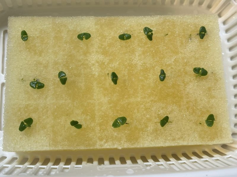 この時点で液肥を上げたほうが成長スピードが上がりますが、藻(あおこ)がスポンジに付くのが嫌でとりあえずまだ水のみです。