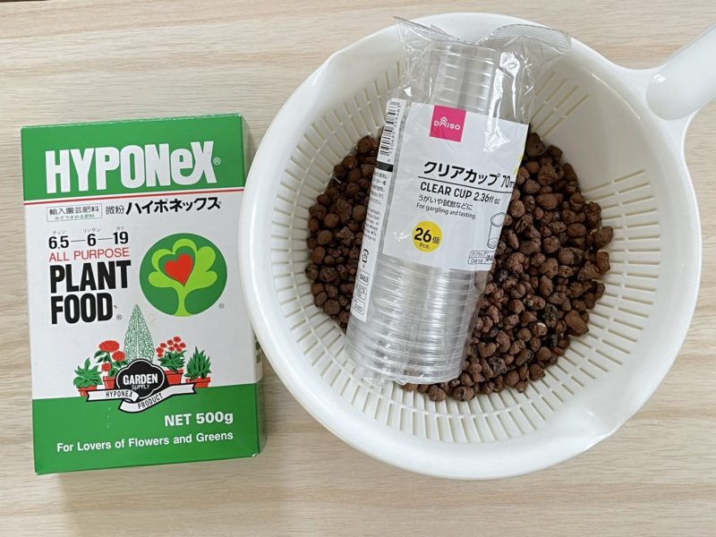 - ハイドロボール(中粒)※100円ショップにも代用品あります。