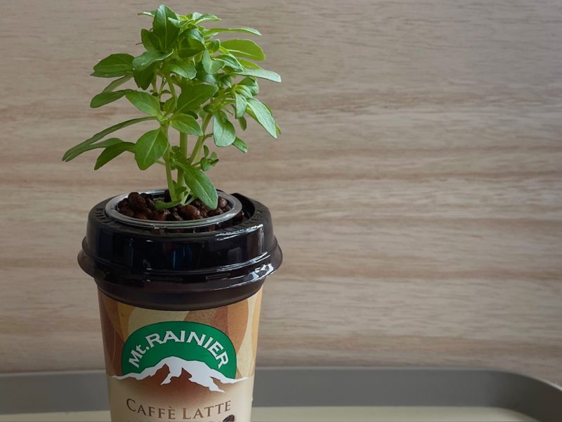 コンパクトにおけるようになったブッシュバジルは、室内のLEDライトから日の当たる窓辺に移動させて育てています。