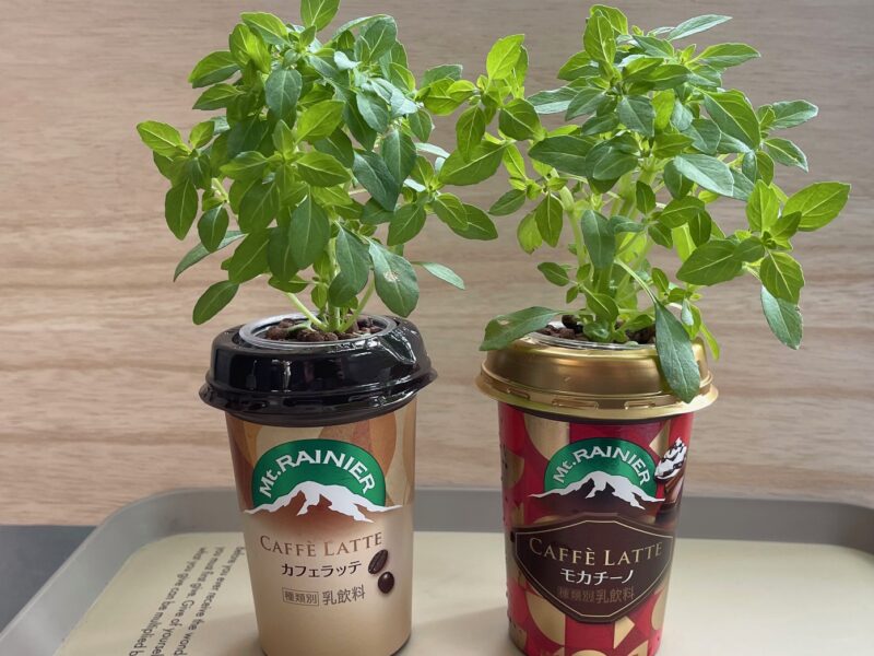 抜き取ったプラカップはコーヒーの空容器(マウントレーニア)の蓋をくり抜き、プラカップを差し込みました。