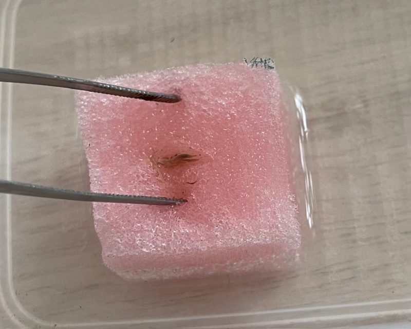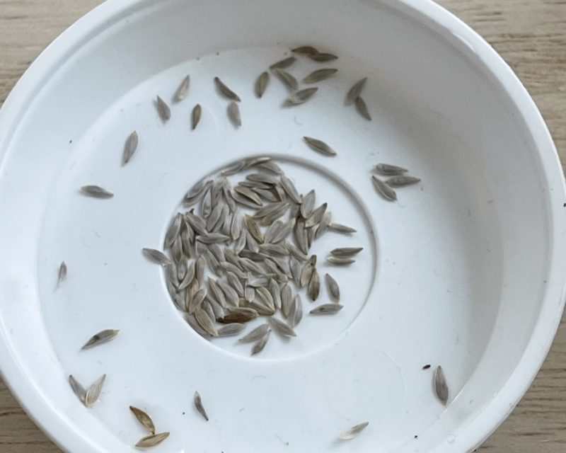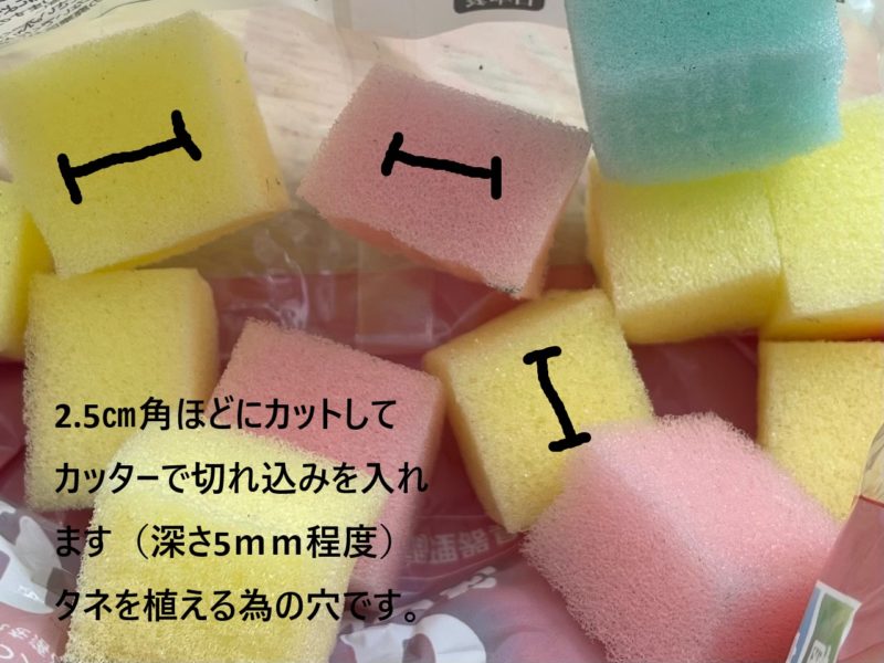 スポンジはしっかり水分を吸水させてください。種の深さはこの程度です。(好光性種子です)