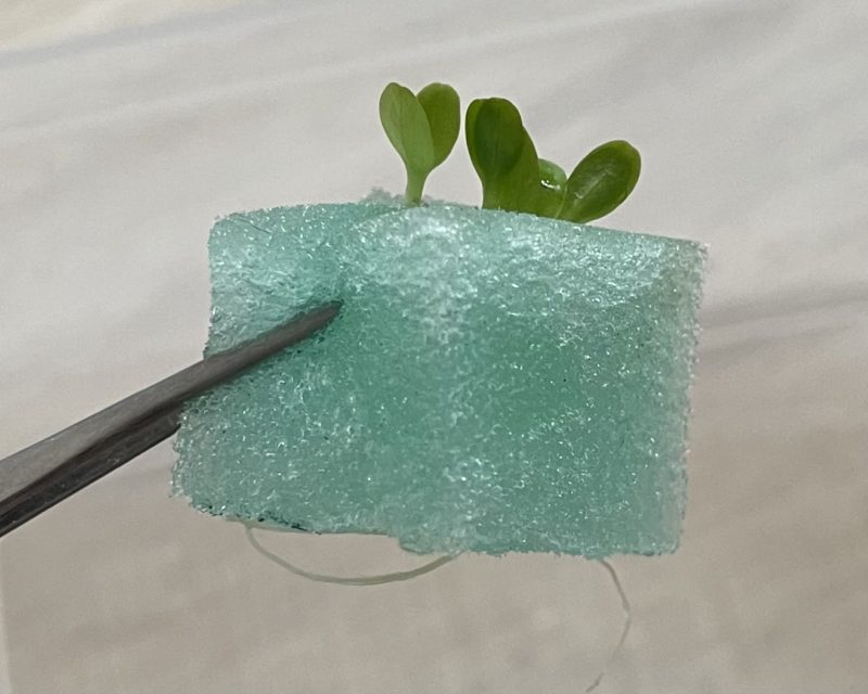 苗がぐらつかないようハイドロボールで土寄せし、スポンジが見えない状態にしますた。