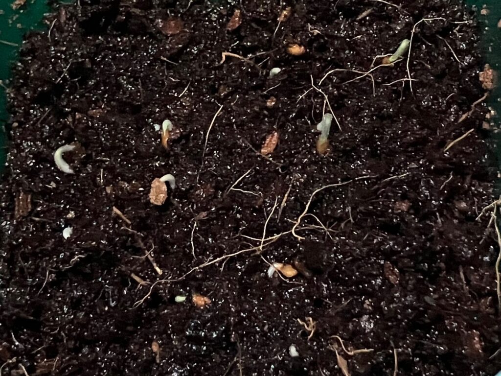 種まきから11日経ち、1袋全部蒔いた種はほとんど発芽したようです。