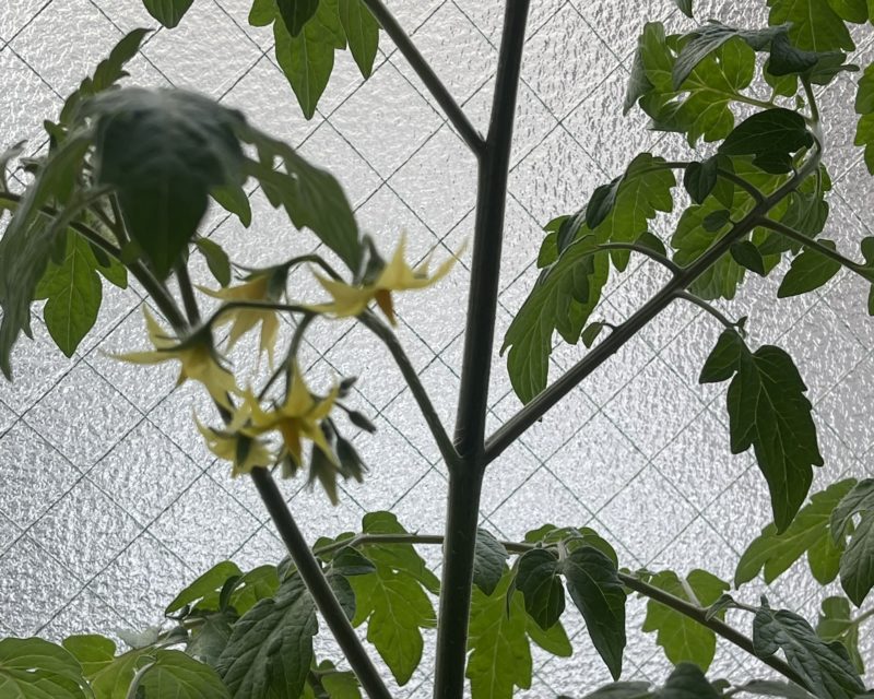 ↓小さい鉢でも花がさいてきました。トマトは丈夫ですね。