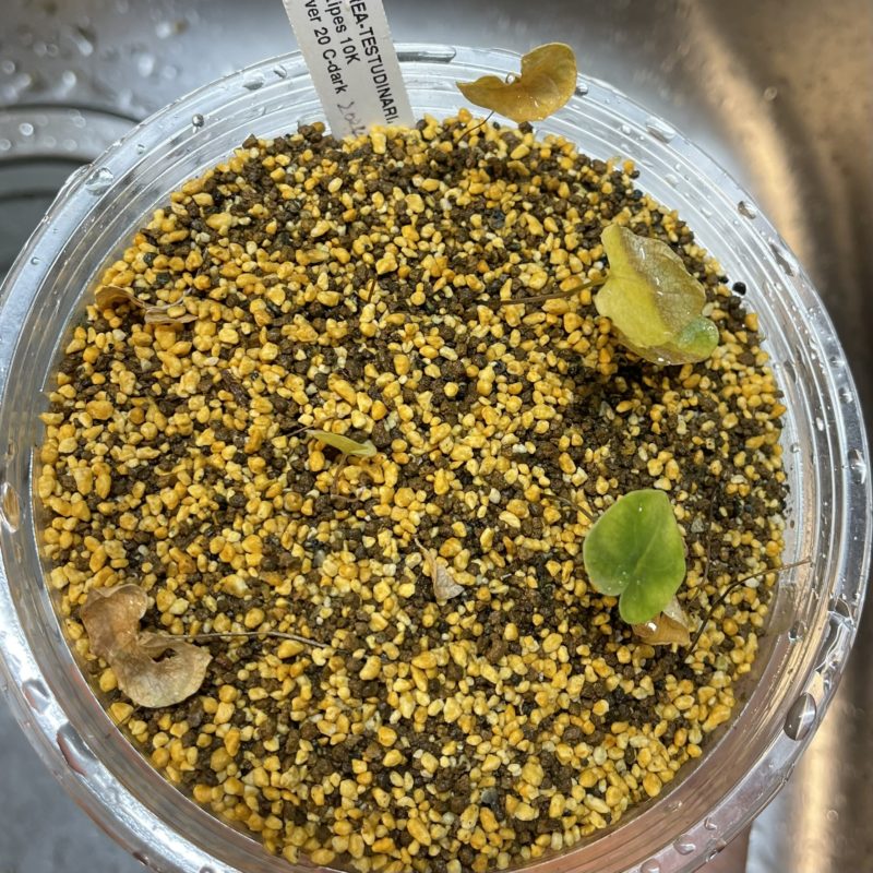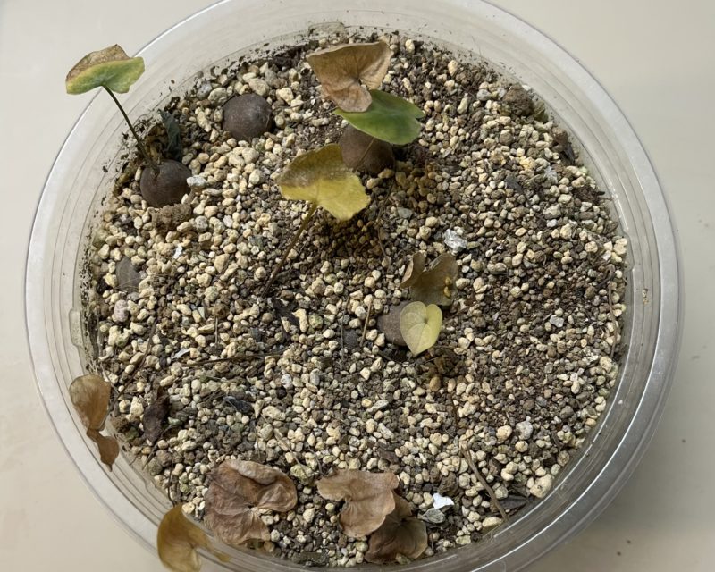 実生:亀甲竜は嫌光性種子。光が当たると発芽をさまたげてしまうので深めに種を植えた方が良い。