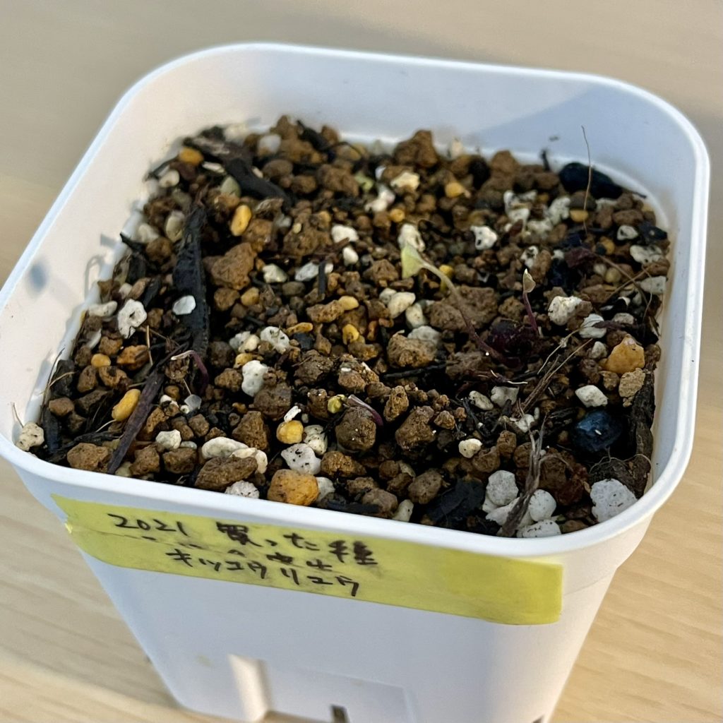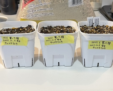 ・亀甲竜の種:1鉢に14粒(2021/11の古いタネは2鉢・2023/6のタネは1鉢でみていきます)