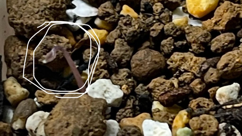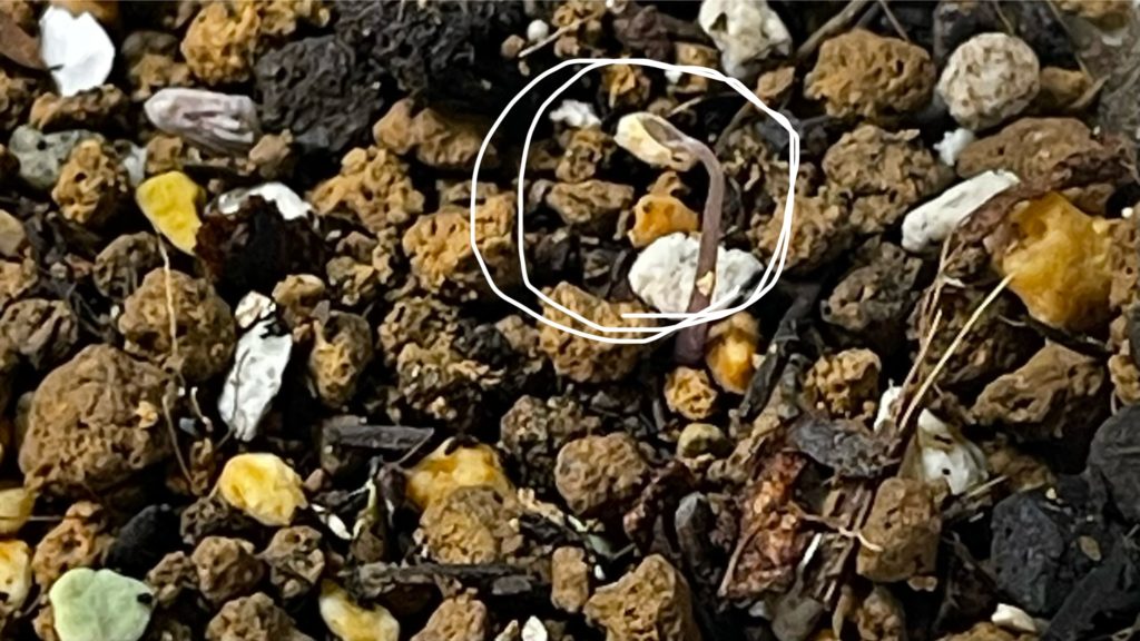 今回はそれを踏まえて種子は1センチほどに深植して、LEDライトが当たらない場所に配置。
