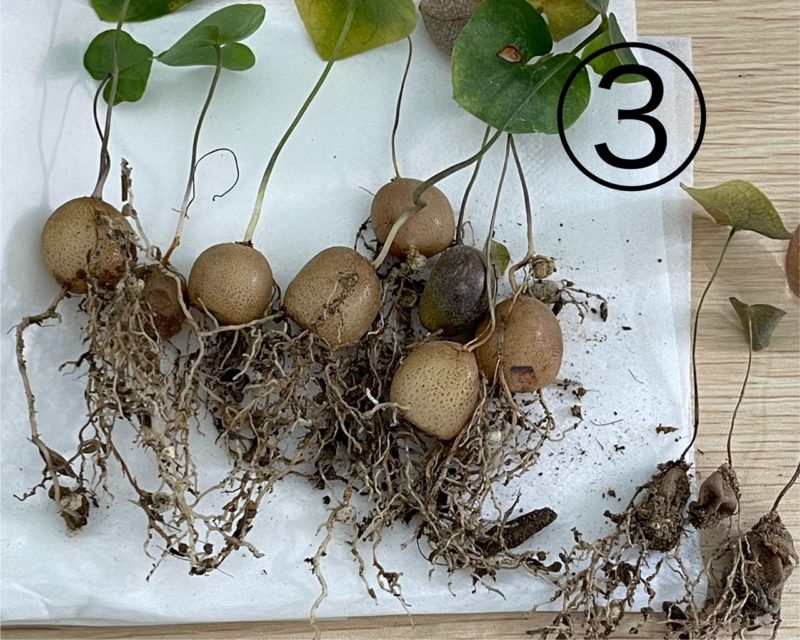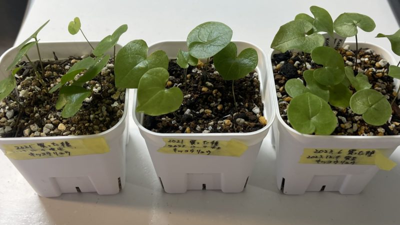 2年前の亀甲竜のタネは発芽はするけど、新鮮なタネより発芽が悪くなるという結果になりました。残念なのは新しいタネの鉢が4つ腐ってしまっていたこと。発芽が良く塊根がきつまってしまい、やや小ぶりになった感じです。