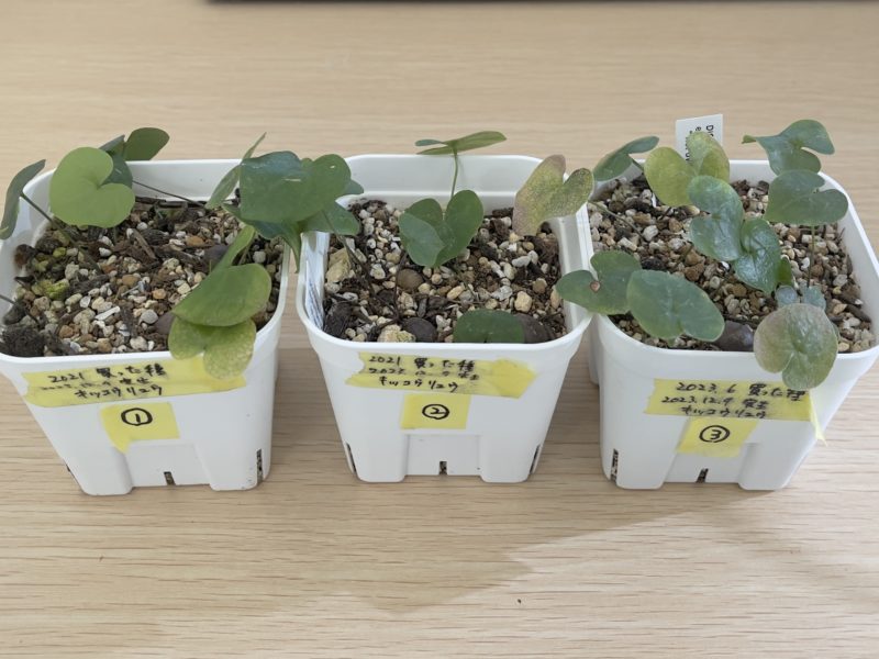 ①2年前の2021/11月のタネ ②2年前の2021/11月のタネ ③2023/6月に購入したタネ(半年前)