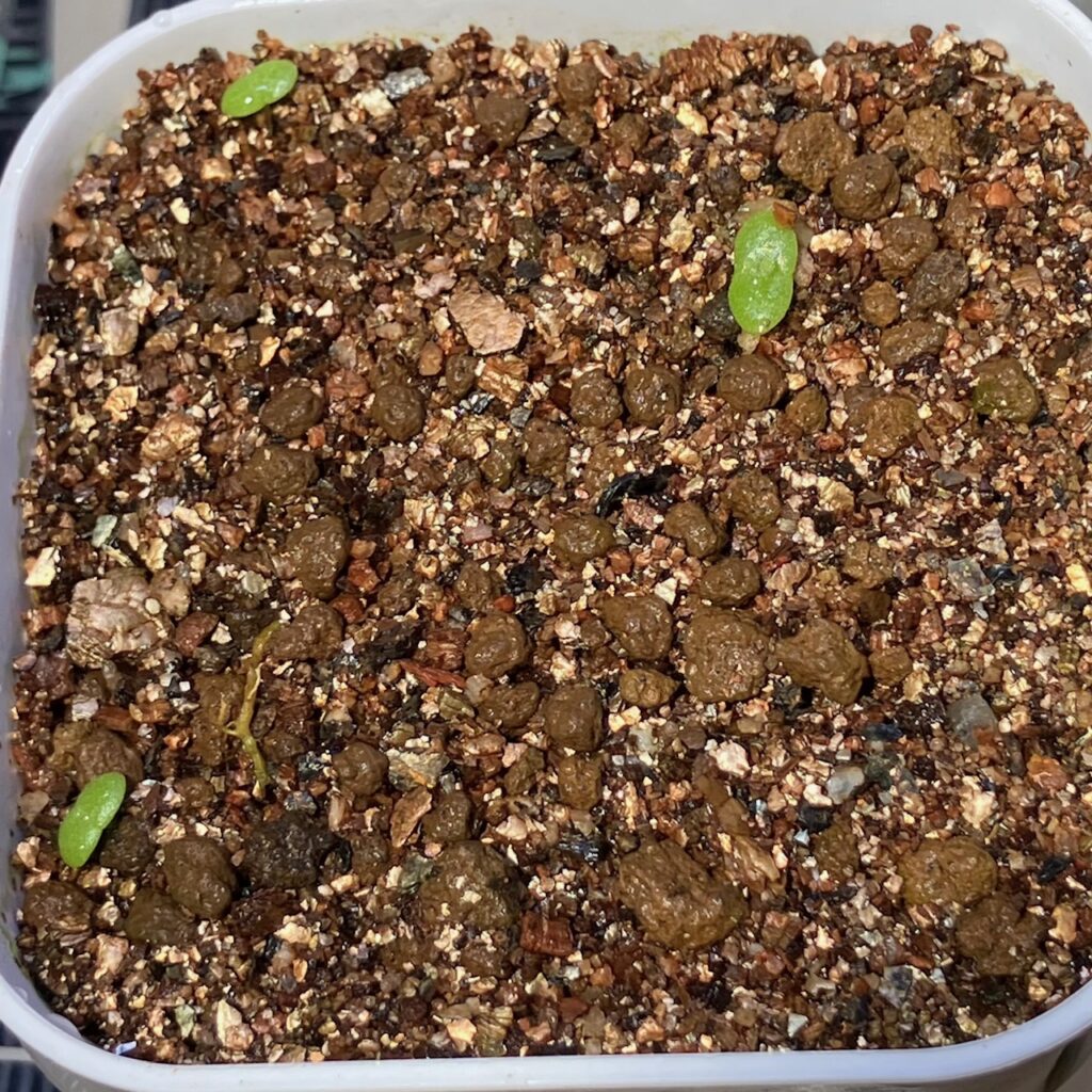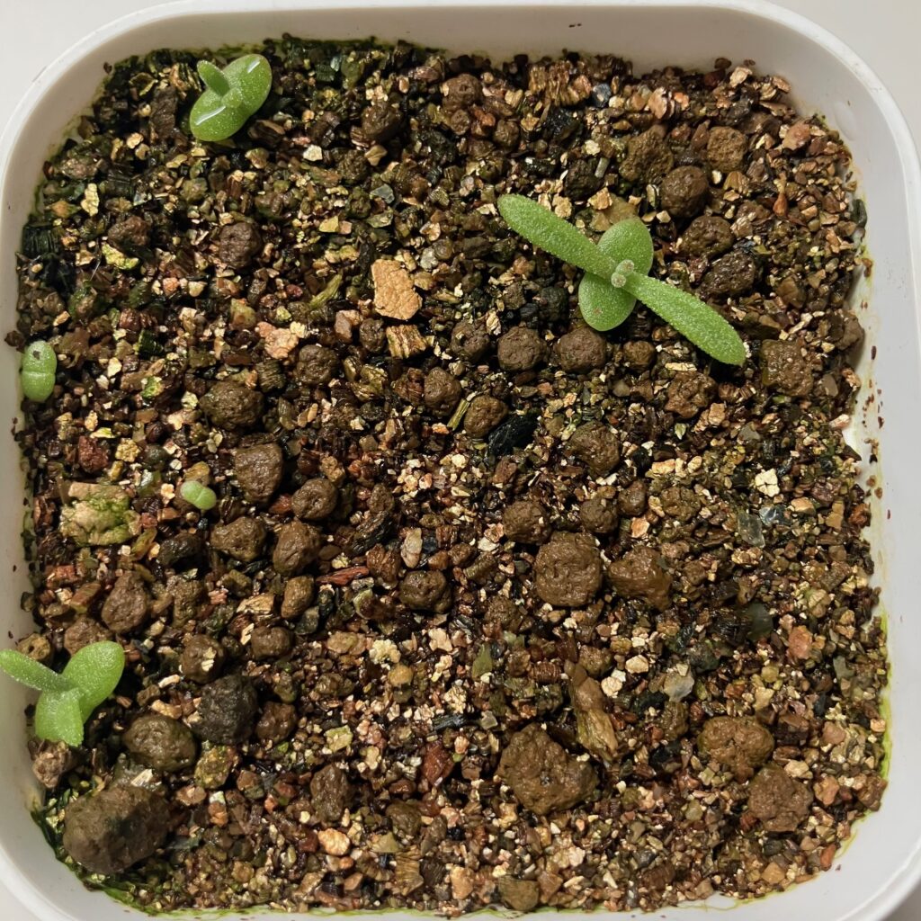 メセンのタネとりは初めてでしたが、色々な方のブログや動画を参考に、試行錯誤しながら作業し、何とか発芽までいけました。