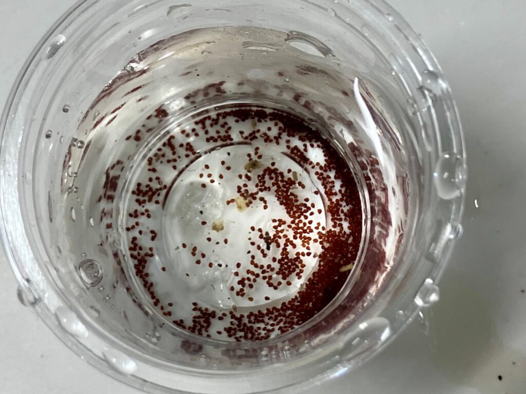 種が下に沈む為、上澄み(水面に浮いている軽い殻やゴミ)を何度か流して、種を殻を綺麗に選別することが出来ました。