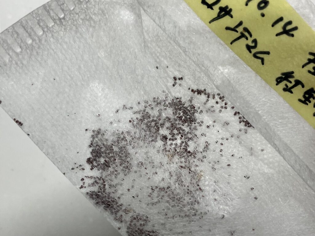 播種したタネはこちら。多分70粒くらい。少しの風でも飛んでいきますので、種まきはかなり慎重な作業となります。