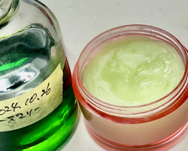 以前作ったローズマリーチンキを使い、保湿たっぷりなローズマリークリームを作りました。