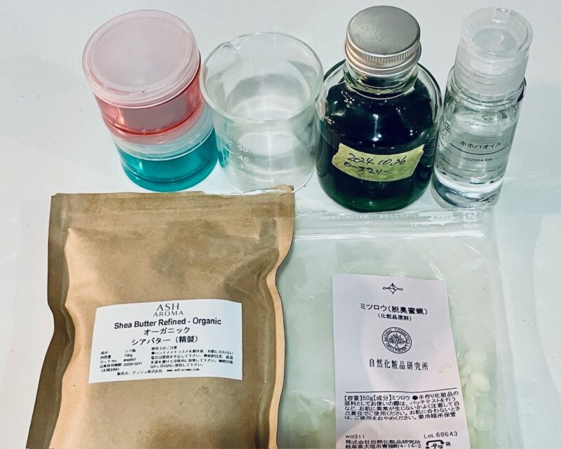 シアバターやミツロウはネットで手軽に手に入りやすいです。たっぷり作れるので、コスパも◎!