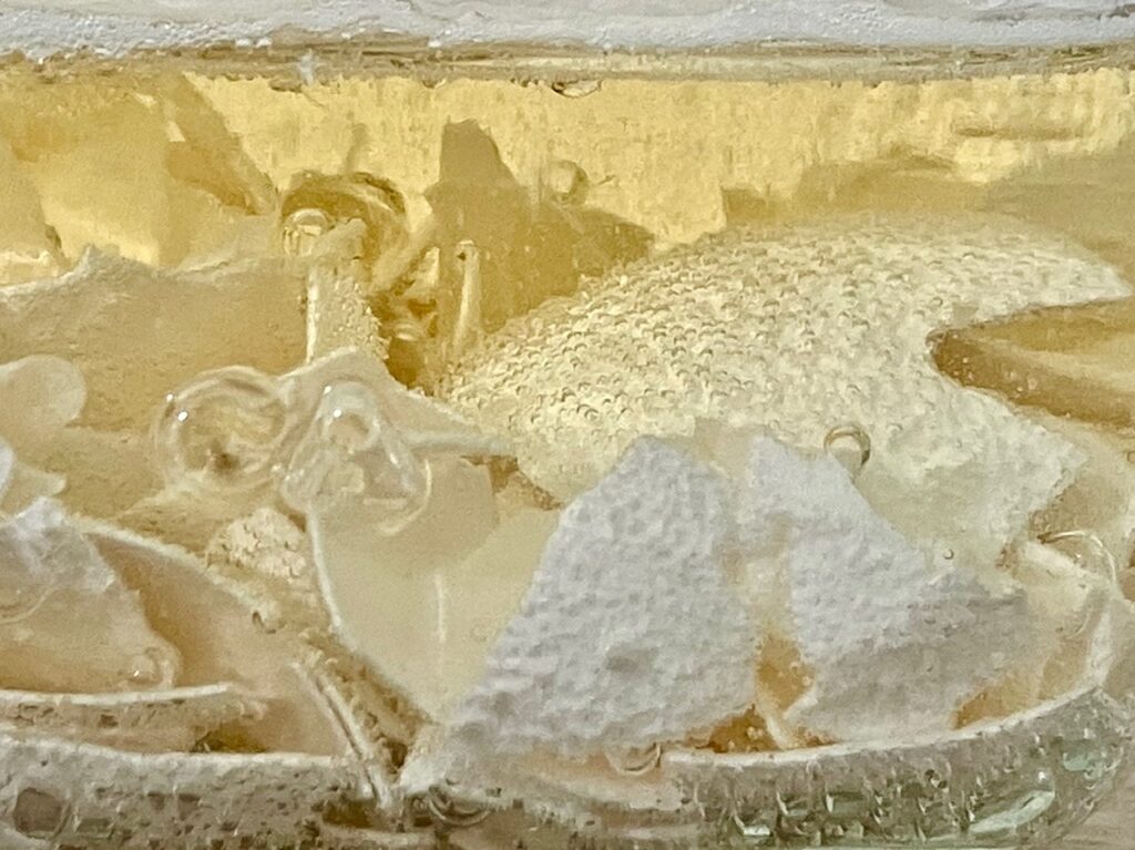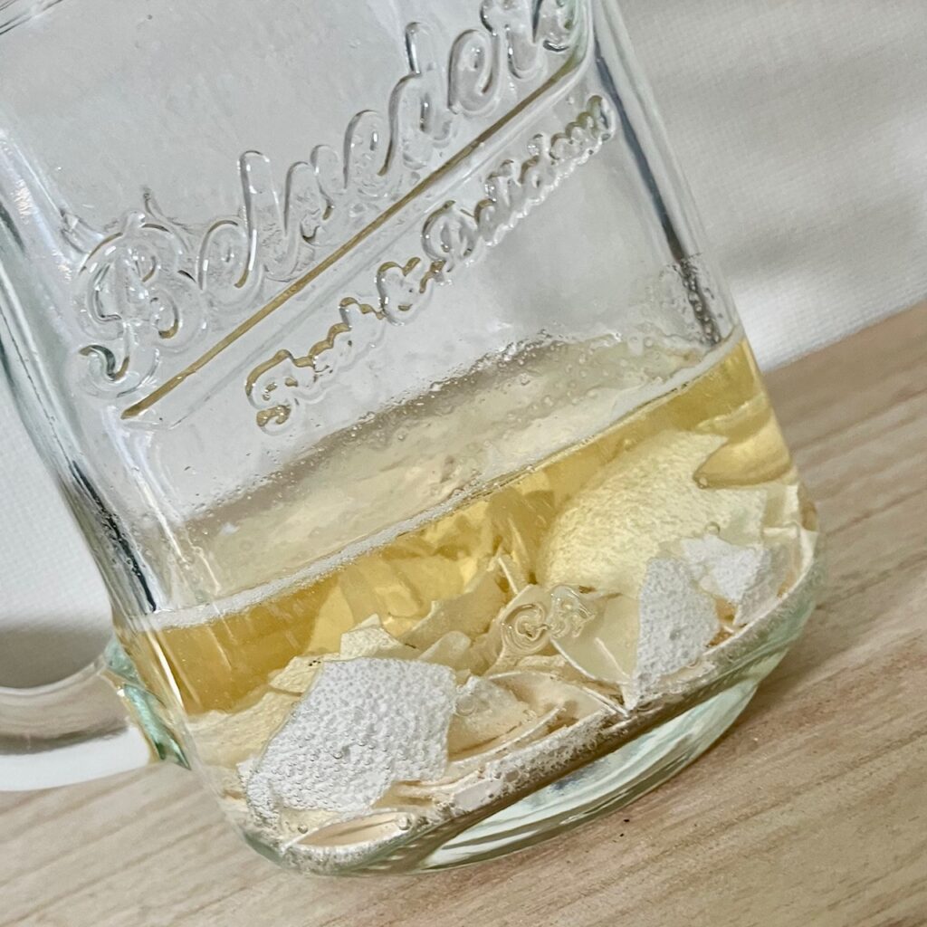 (※よく砕いた方が卵の殻と酢が反応する面積が増えて、効率よくカルシウムが溶け出します。)