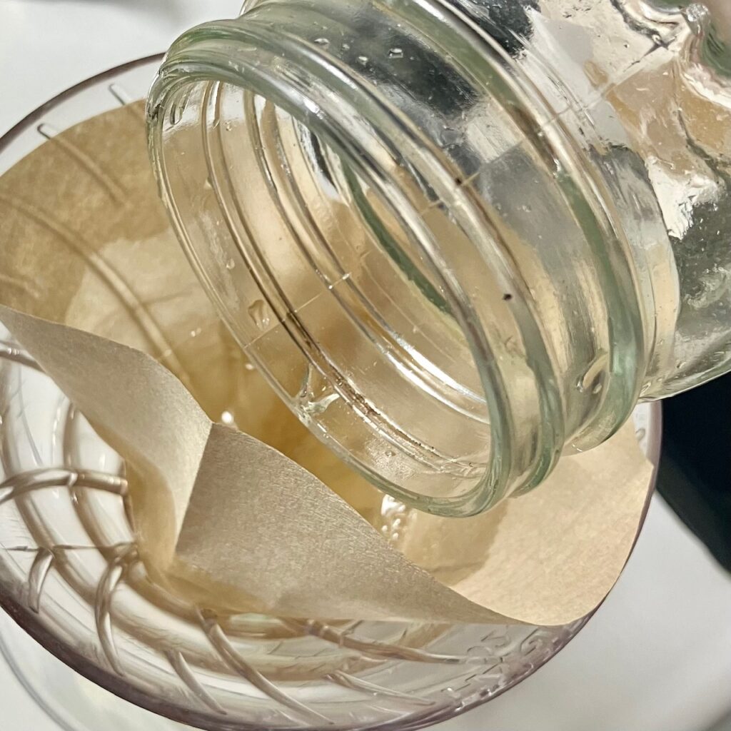 ブクブクがおさまったらコーヒー用野フィルターなどを使い濾して、完成です。
