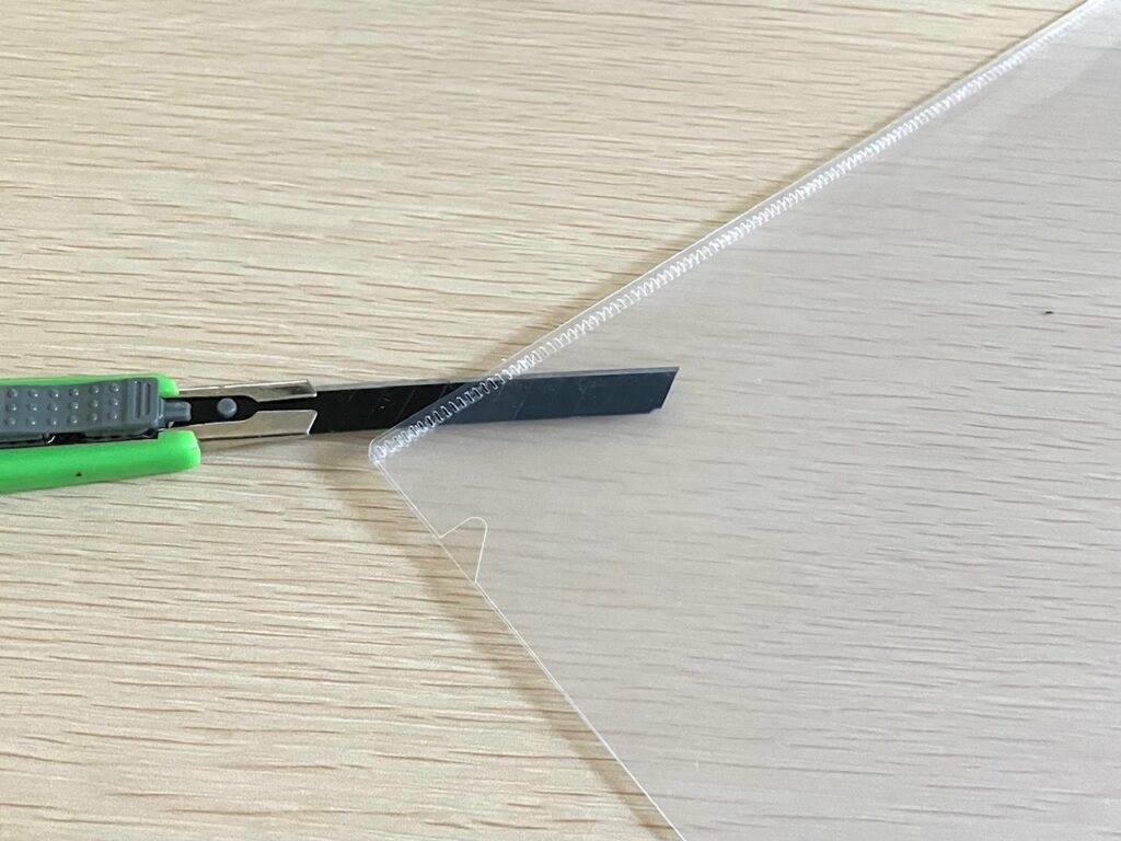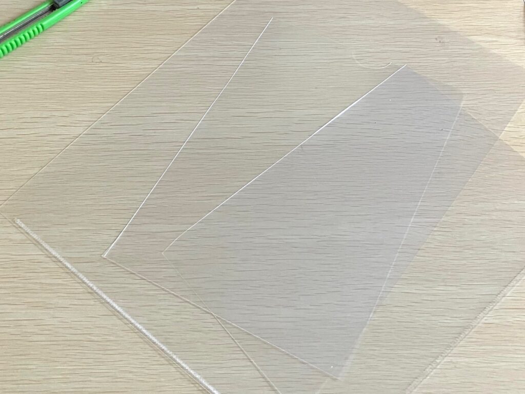 1.2枚になっているクリアファイルの淵をカットしてバラバラにします。