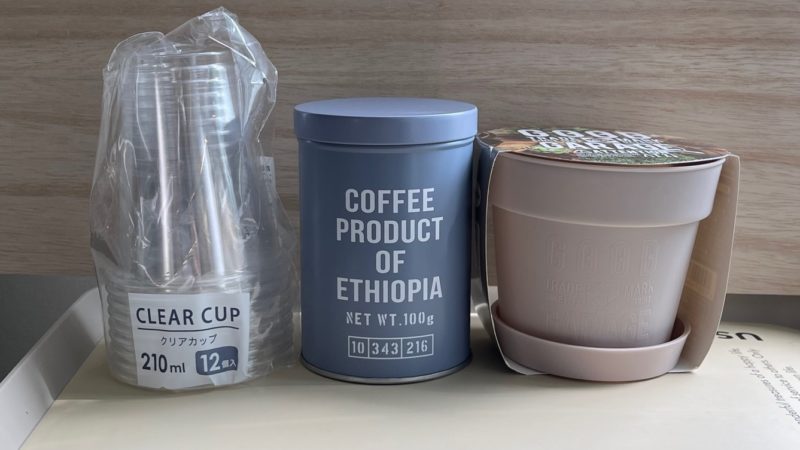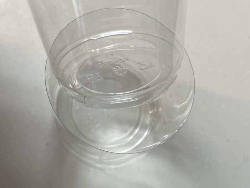 プラカップをカットして、重ねて受け皿代わりにしました。(今回は底から5㎝ほどでカットしてます)