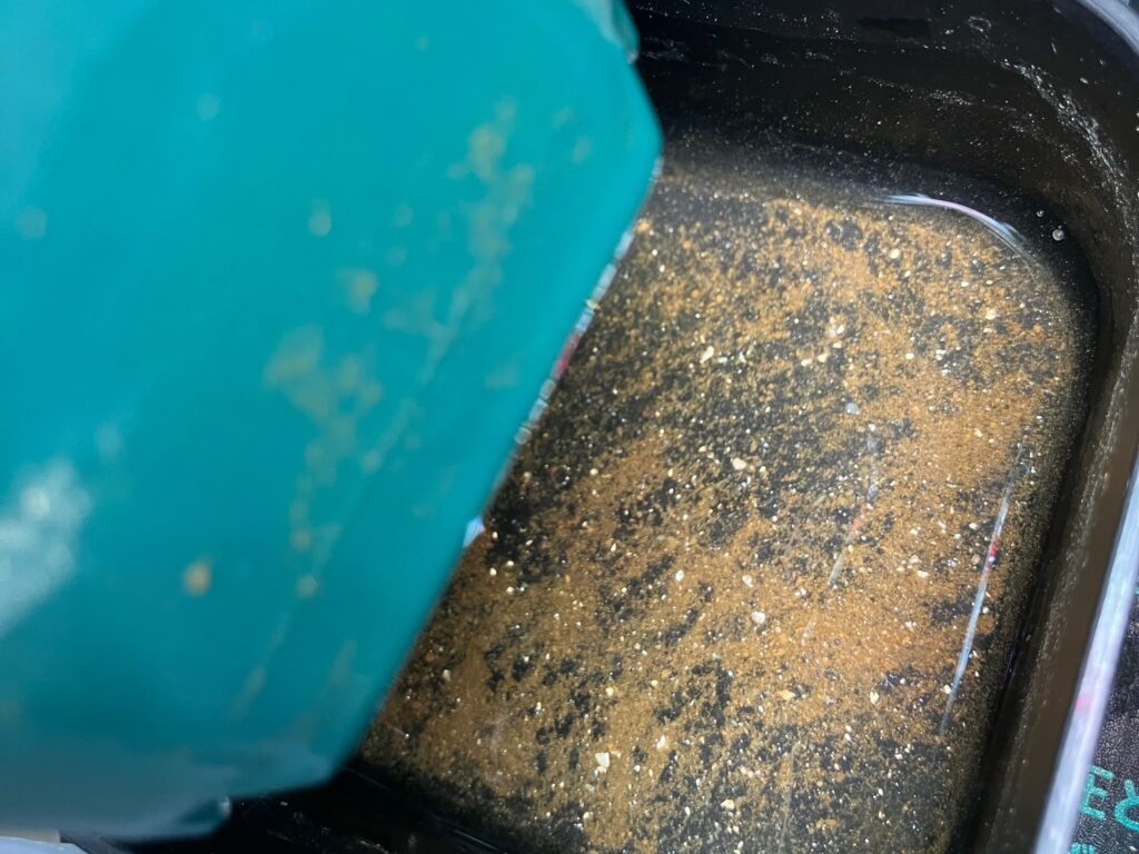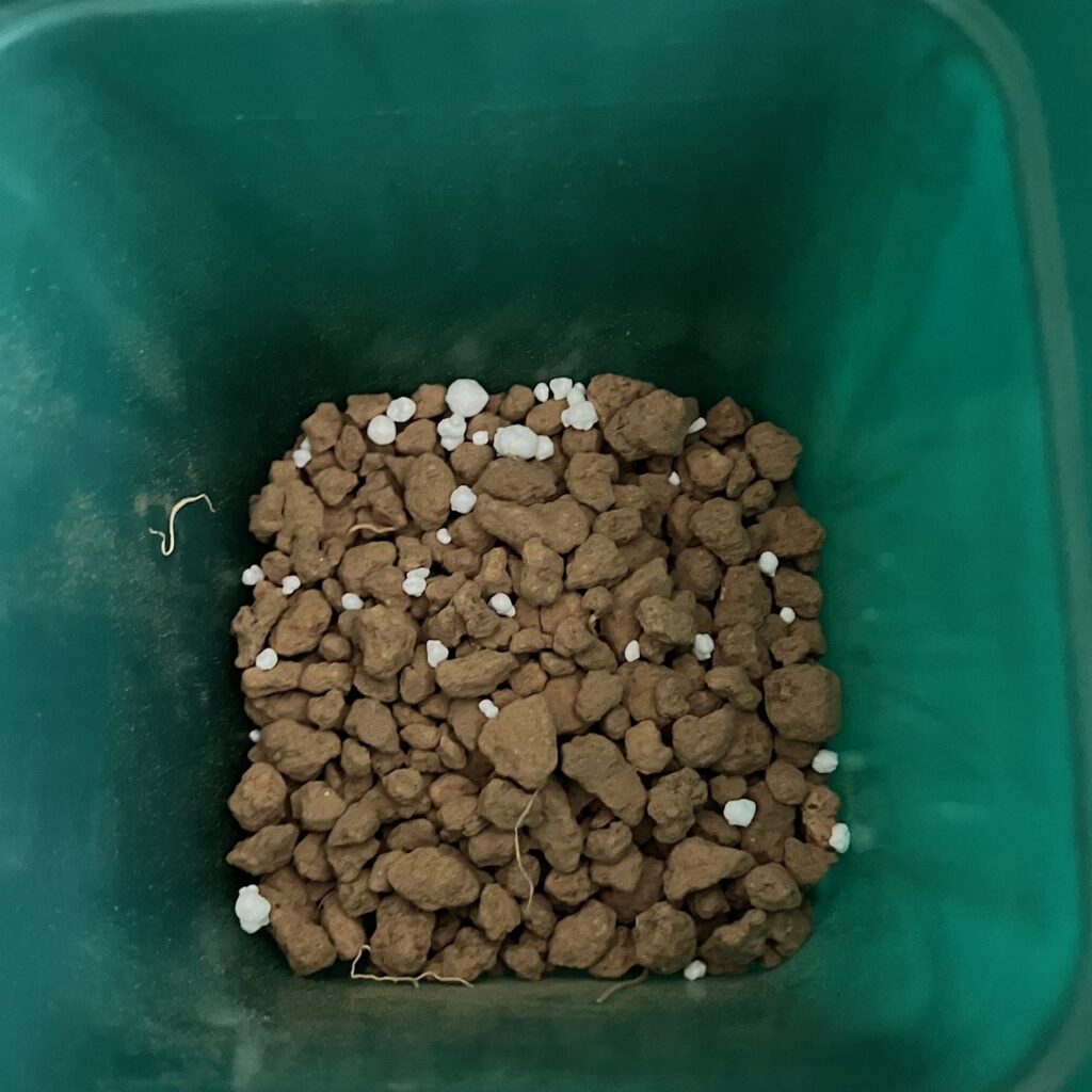 用土には、赤玉土小粒とバーミキュライトを半々の割合で混ぜたものを使いました。