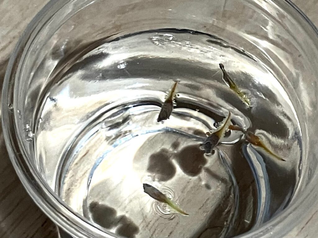 こちらの種の茎をカットして一晩水に漬け置きしました。