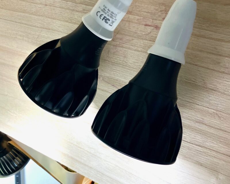 育成ライトは2灯使ってますが豆苗プランター2つを育てる場合はスポットタイプライト1灯でまかなえます。