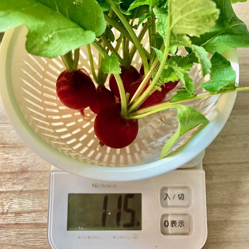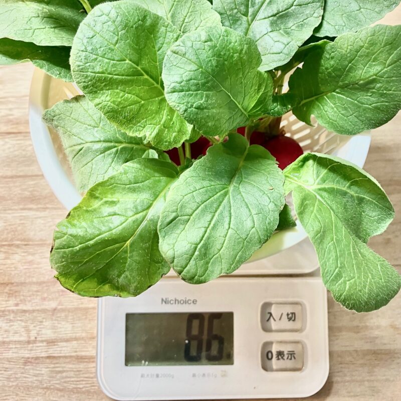続いて、収穫したラディッシュの重さです。