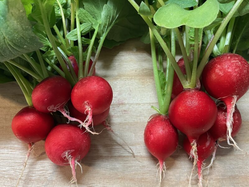葉の量が多いので料理で楽しみたい場合は、赤丸はつか大根がいいのかもしれない。