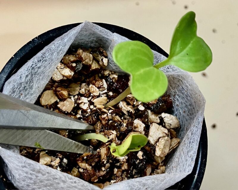 数本生えてきたら、元気な方を1本残し間引きをしていきます。(間引きはハサミでカットしたほうがいいです)