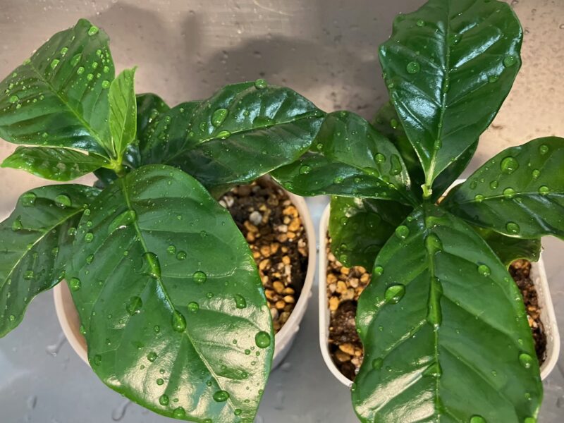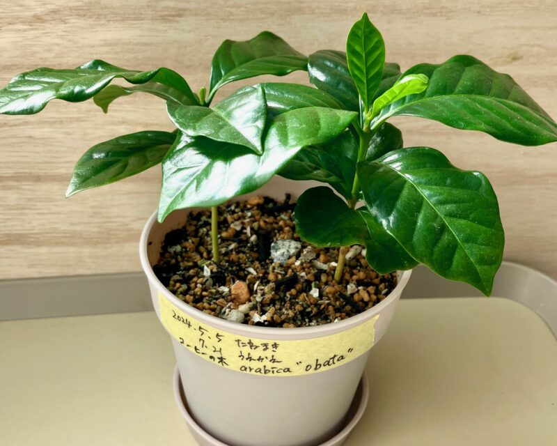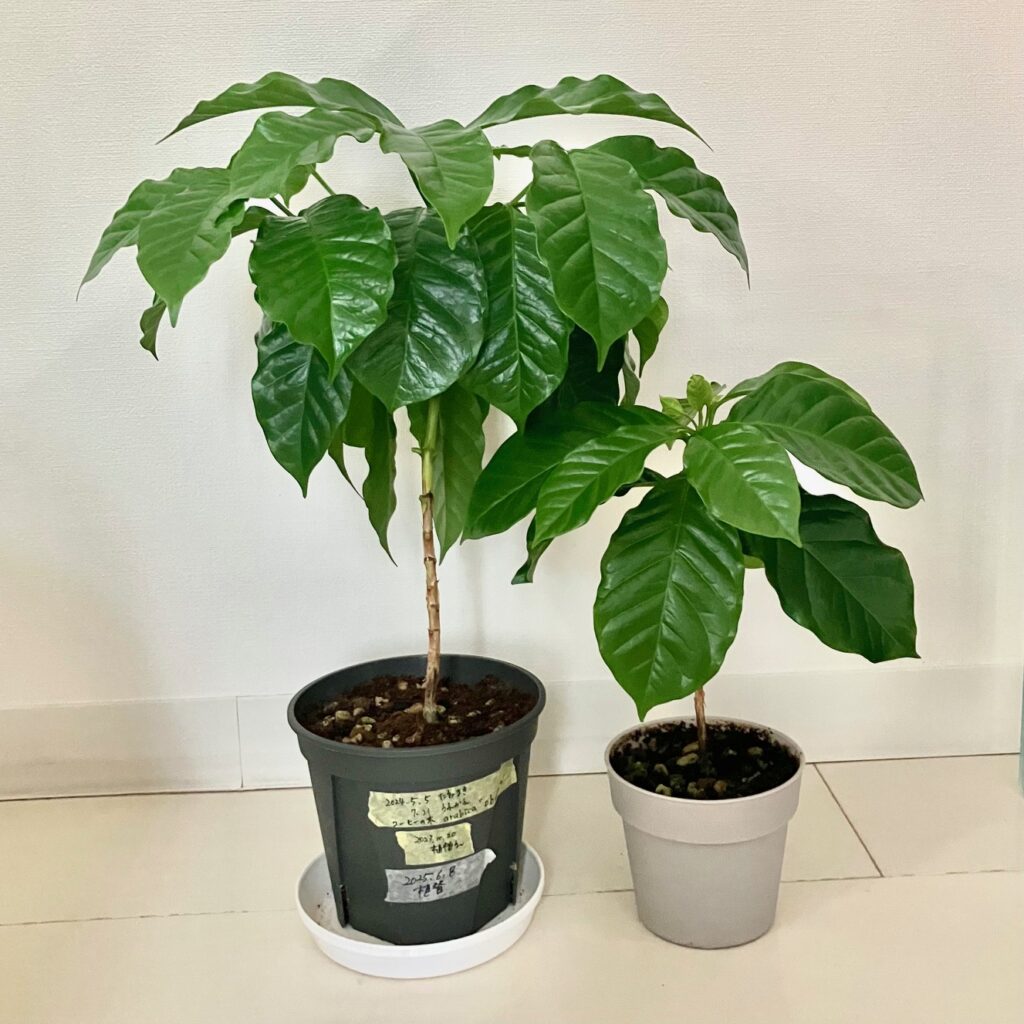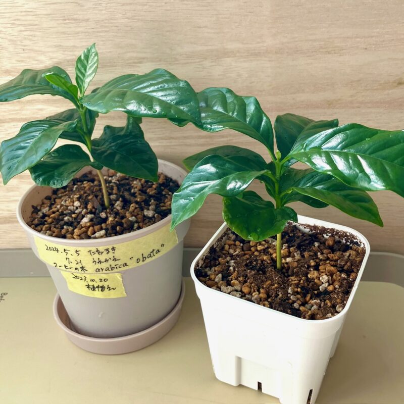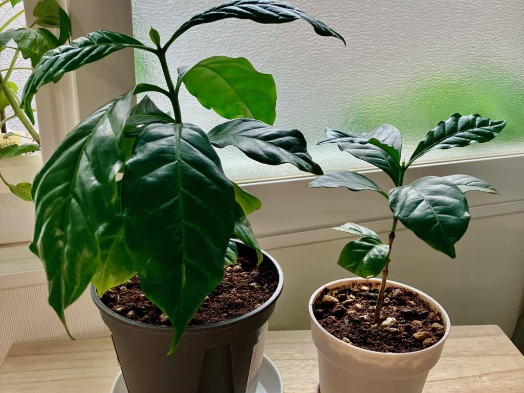 種から大切に育ててきたコーヒーの木。2本一緒に植えて、窮屈になってきました。本来なら植え替えに適した時期ではないけれど、思い切ってそれぞれを広々とした鉢に移して、のびのびと成長させてあげようと思います。