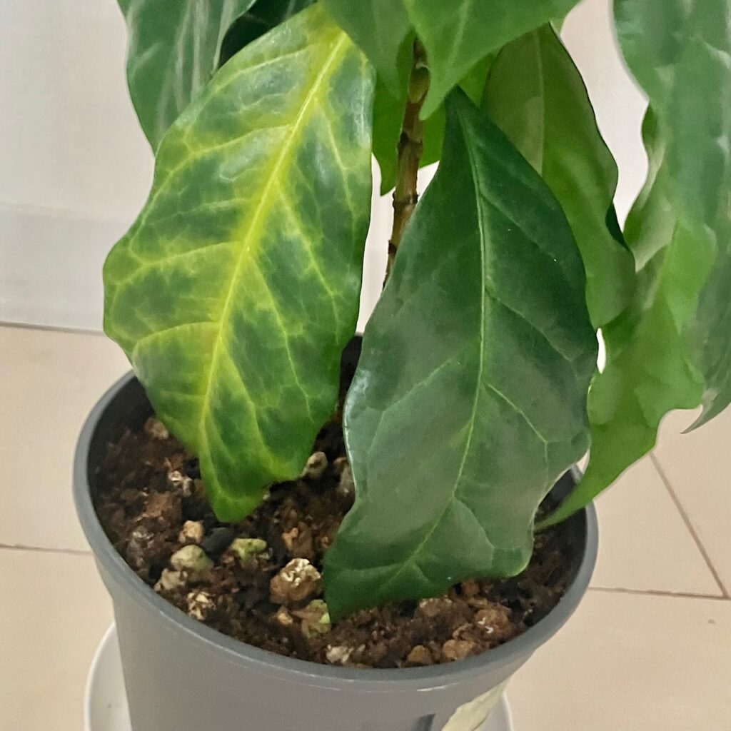土が少し乾きにやすい素材で、水枯れしてしまったり、室内管理なのでどうしても光が不足しがちです。やはり、室内でコーヒーの木をキレイに保つのは難しいなと感じています。