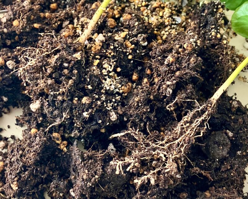 鉢から取り出してみると、それほど根は張っていませんでした。