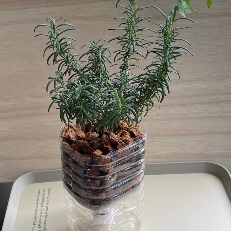 昨年挿し木で増やしたローズマリーがやっとここまで大きくなりましたので(2Lペットボトル栽培)、10㎝ほどの枝を2本カットして100㎖の瓶で少量を作っていこうと思います。