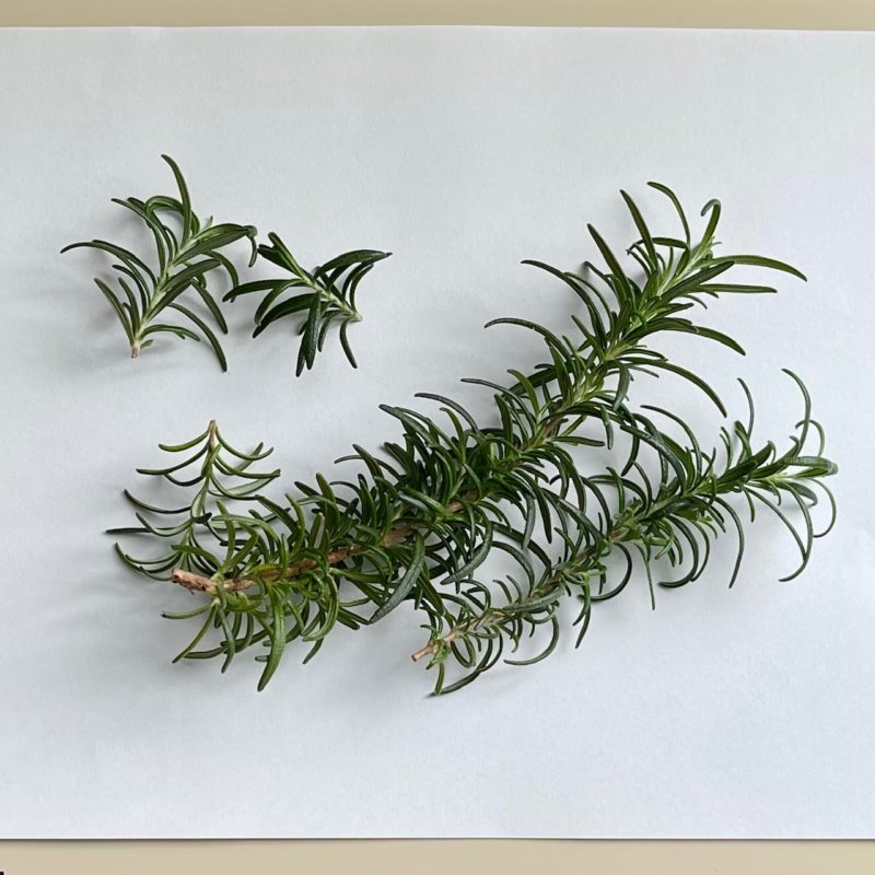 ローズマリーは柔らかい枝はそのまま、木質化した部分は取り除きます。