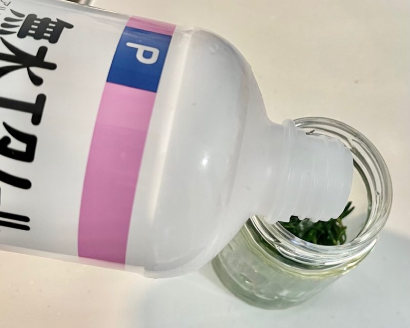 ローズマリーがしっかり浸かる高さまでエタノールを入れていきます。